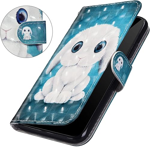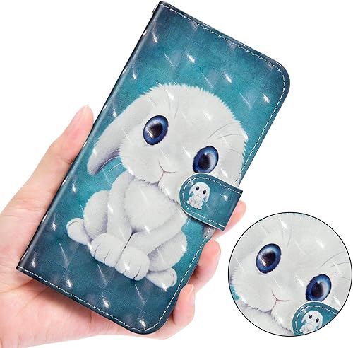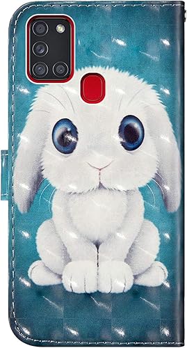 Uposao Compatible avec Galaxy A21S Coque Housse en PU Cuir Pochette Portefeuille Etui Bling Brillante Glitter Paillettes 3D Effet Motif Étui à Rabat Magnétique Coque de Protection,Lapin