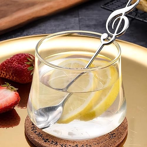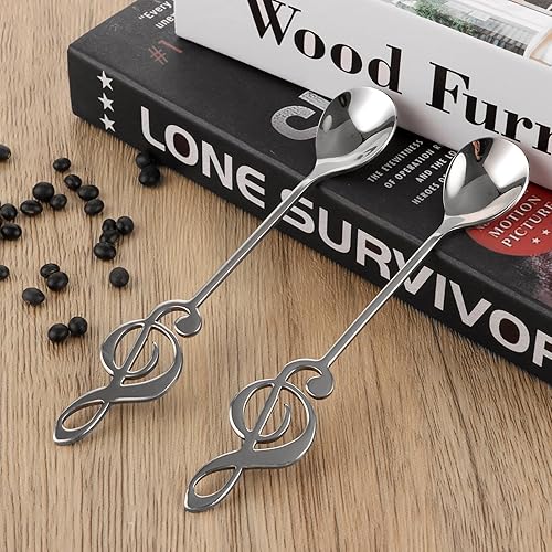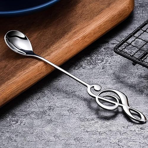 MIVIDE Lot de 16 Cuillères à Café en Forme de Note de Musique, Cuillères à Dessert en Acier Inoxydable, Cuillères Musique Décoratives pour Musiciens, Cadeaux, Café, Thé, Dessert, Argent