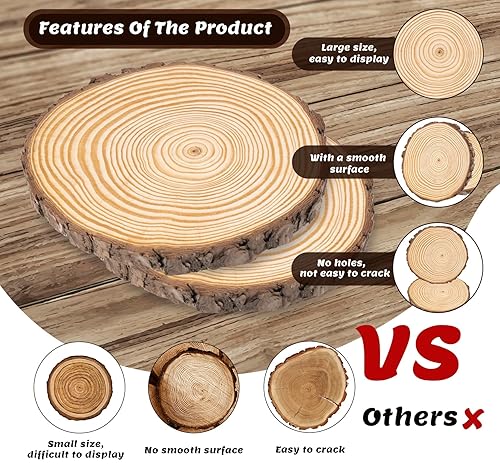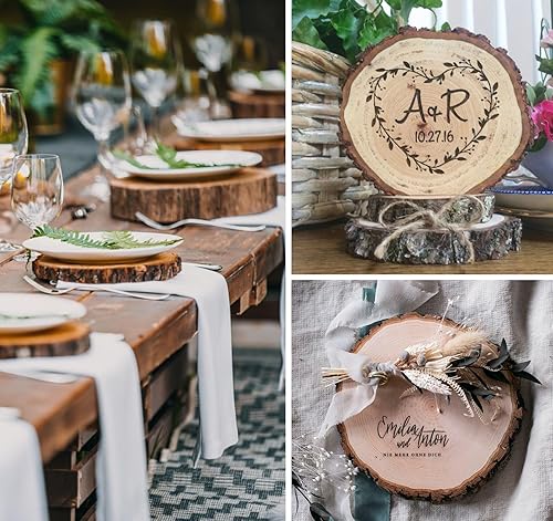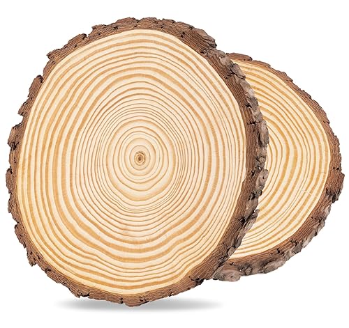 20-22cm Rondin de Bois Sans Trou,1Plusselect 2pcs Rondelles en Bois Naturel,Tranches de Bois Naturel 20mm D'épaisseur,Rond en bois pour Bricolage,Artisanat,Marque Place Mariage,Décoration de Noël Bois