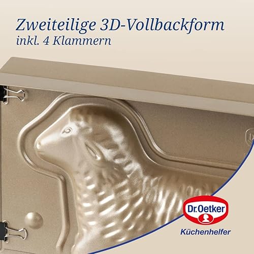 Dr. Oetker 1871 Moule à gâteau en forme d'agneau, Moule gâteau, Moule agneau Pascal, Moule gâteaux de Pâques, Acier inoxydable, Doré, 27,5 x 15 cmx 6,5 cm, 900 ml, Or