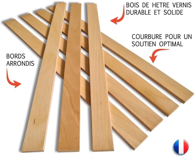 SCM Créations Lot de 6 Lattes 73 cm 730mm Largeur 38mm épaisseur 8mm Bois hêtre Durable | Sommier lit canapé clic clac bz | 7 Plis Rechange Renfort résistant Soutien Matelas