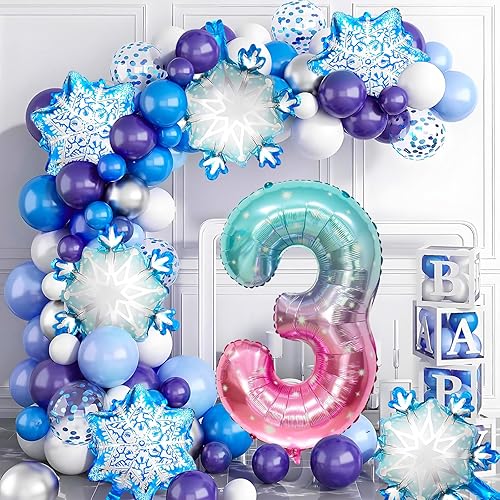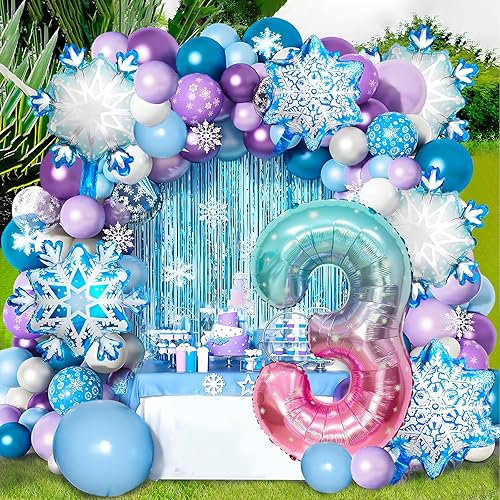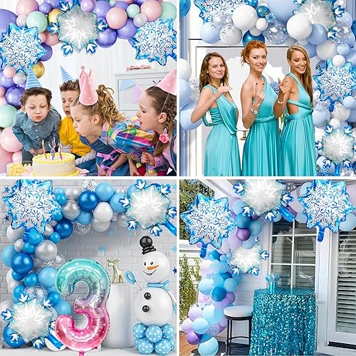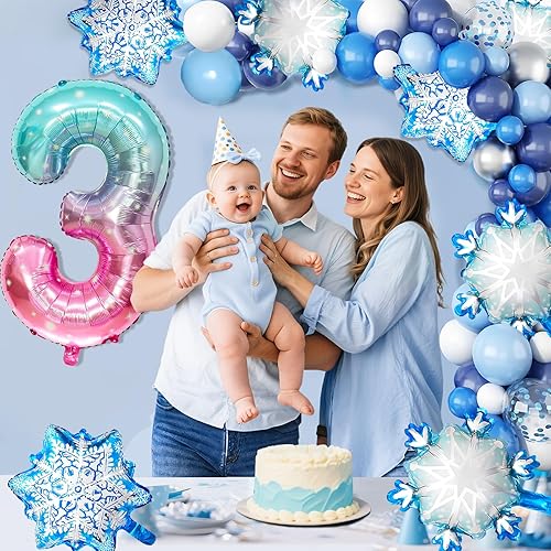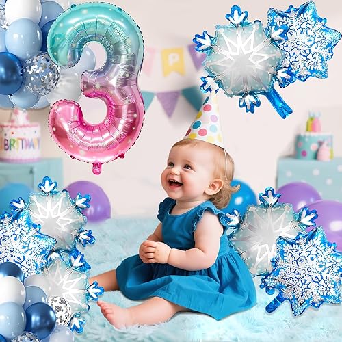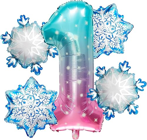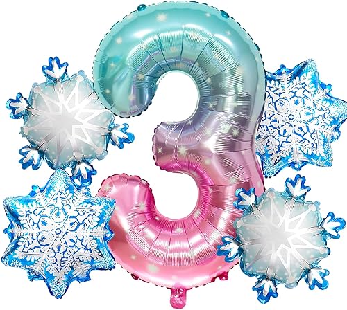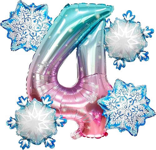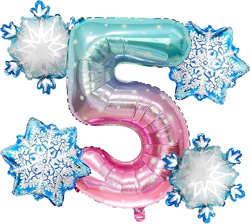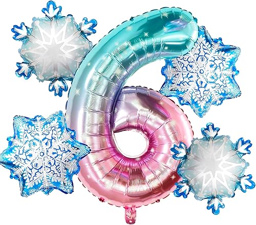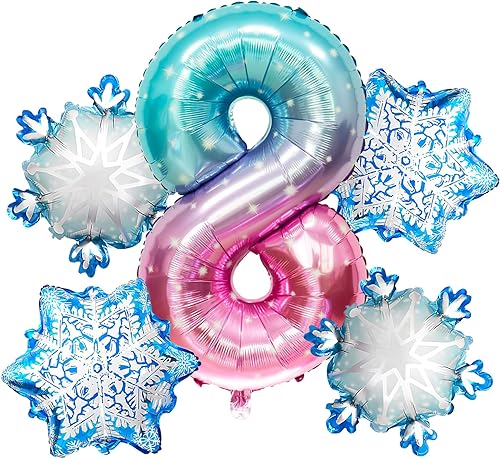 Ballon 8 ans 5 Pièces Ballons Flocon de Neige Ballon Chiffre 8 en Aluminium Anniversaire Flocon de Neige Deco pour Enfants et Filles d'Anniversaire