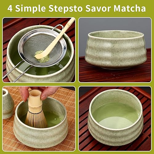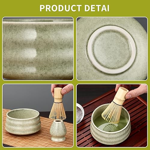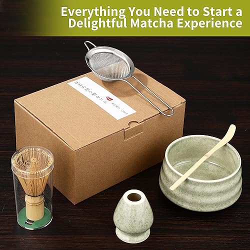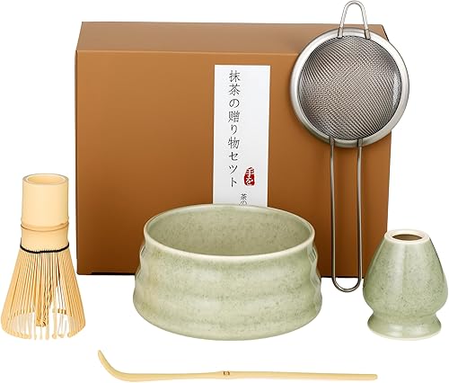 BUCOMTU Kit matcha 5 pièces, bol à matcha, fouet à thé Baibenli, support à fouet à thé, filtre, cuillère à thé, ensemble matcha adapté aux débutants