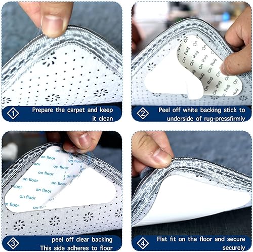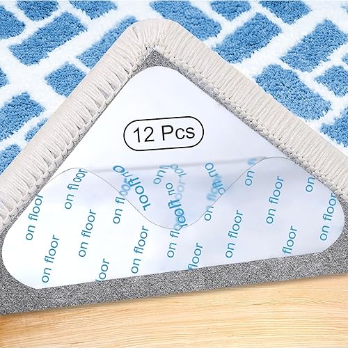 Elizand Anti Derapant Tapis,Rug Grippers 12Pcs Triangulaires Antidérapant pour Tapis,Anti Curling Carpet, Tapis lavables ou Autocollants de Tapis pour Tous lestypes et Tailles de Tapis
