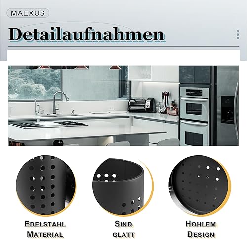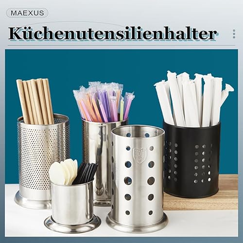 MAEXUS Lot de 2 porte-ustensiles de cuisine en acier inoxydable - Organiseur élégant pour plan de travail