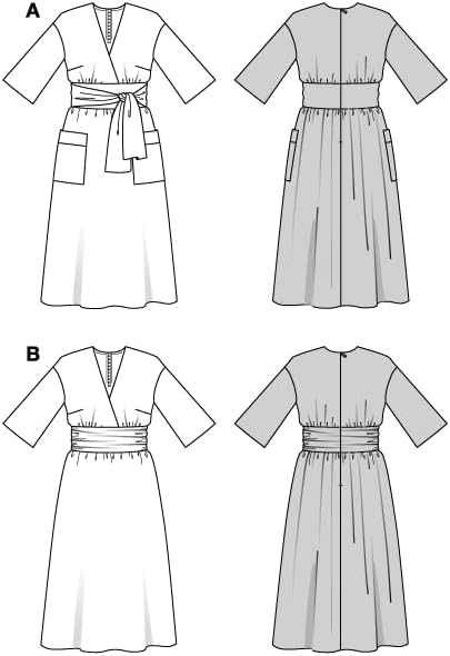 Burda style Patron de couture pour femme #5724 Robe midi avec effet enveloppant et robe avec ceinture Taille 36-48
