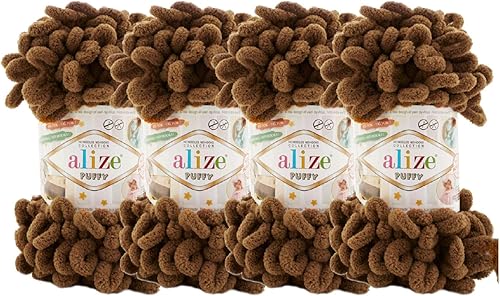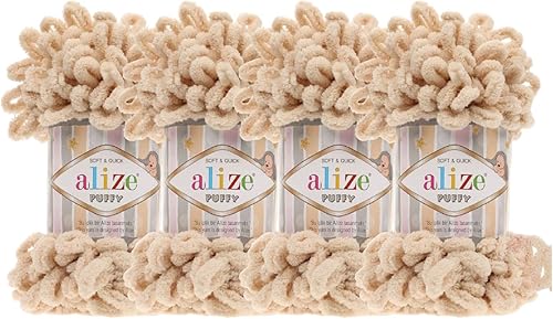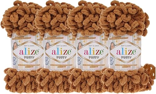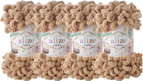 4 skn/ball Alize Puffy Baby Big Loop Couverture Laine 100% Micropolyester Fil doux 400 gr (179-Camel)