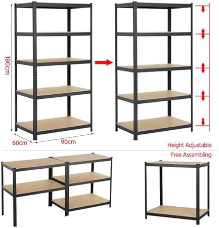 Abician Étagère de Rangement Étagère de Garage Réglable Rayonnage Métallique pour Entrepôt Atelier Salon Cuisine 180x150x45 cm