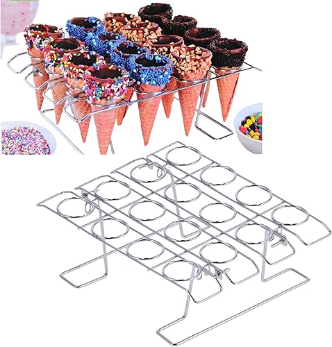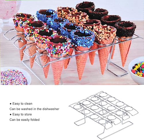 Mokernali Supports De Cuisson pour Cupcakes à 16 Trous, Porte-cônes De Crème Glacée Pliants en Acier Inoxydable