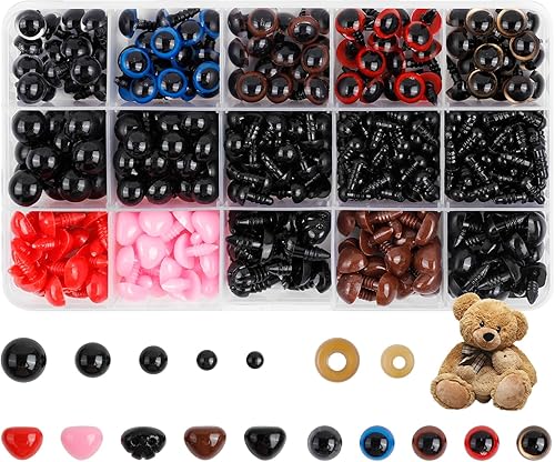 Romon Yeux de Securite Amigurumi, 752 Pièces Yeux et Nez de Sécurité avec Rondelles Yeux Amigurumi Crochet, 5-12mm Yeux Peluche Oeil Plastique Safety Eyes Crochet Yeux pour DIY Poupée Marionnettes
