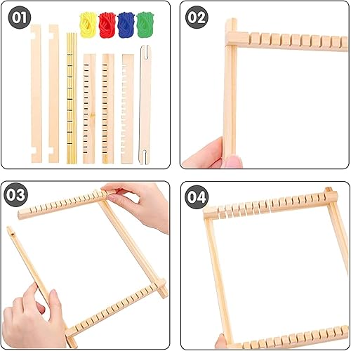 Métier À Tisser En Bois,Enfant Diy Outils À Tricoter,Kit Tissage Enfants,Diy Machine Tisser À La Main,Métier À Tisser Pour Adultes,Éducatifs Métier À Tisser En Bois,16,5x21CM,Kiuiom