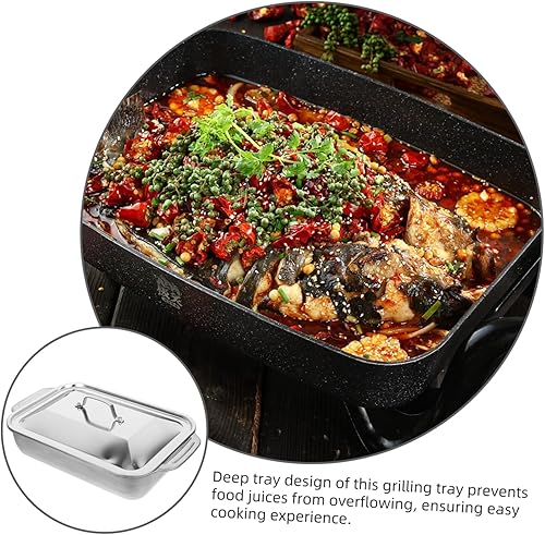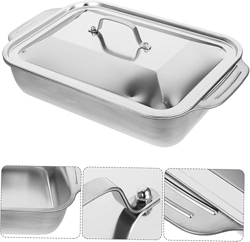 HOLIDYOYO Plat à Rôtir en Acier Inoxydable Robuste avec Couvercle Rectangulaire pour Plat de Restauration en Métal