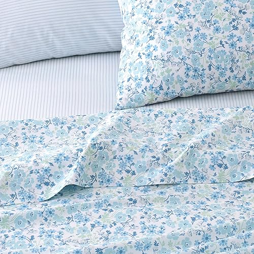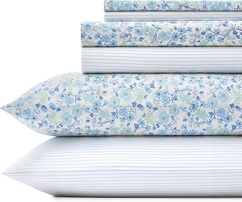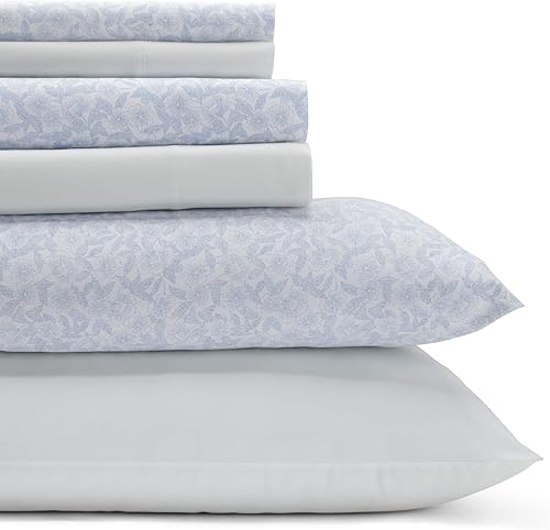 Laura Ashley – Parure de lit 6 pièces en Percale de Coton, décoration d'intérieur croustillante et Cool (Marissa Coral, King Size)