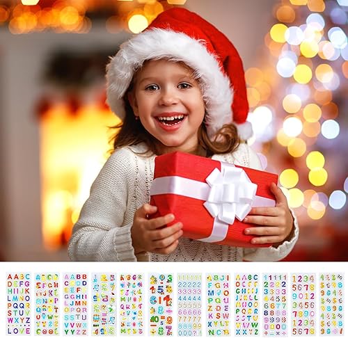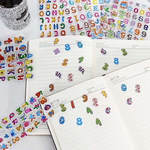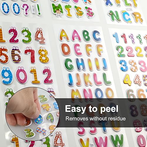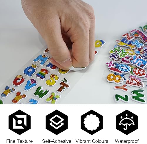 Lot de 12 feuilles d'autocollants 3D pour enfants - Alphabet coloré - Autocollants enflés - Numéros autocollants - Bricolage - Décoration pour filles et garçons