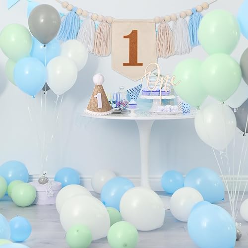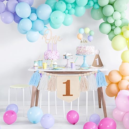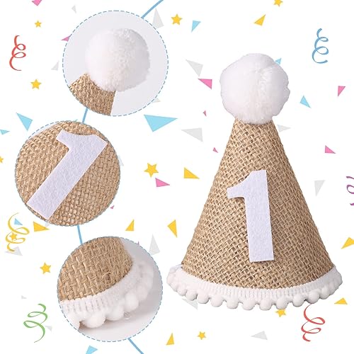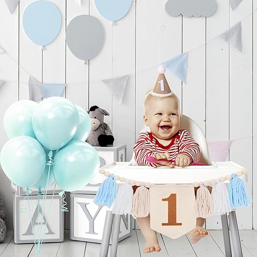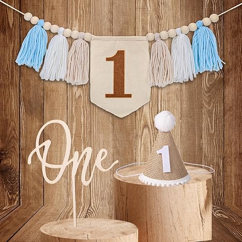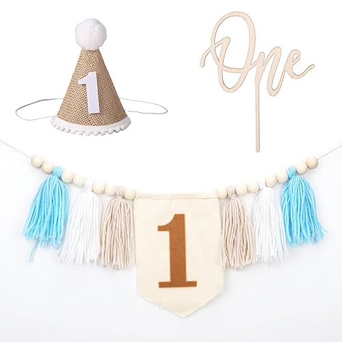 Bannière de Chaise Haute pour 1er Anniversaire, Bannière à Pampilles en Perles de Bois avec Décorations de Gâteau et Chapeaux pour Décoration de Fête d'Anniversaire d'Enfants