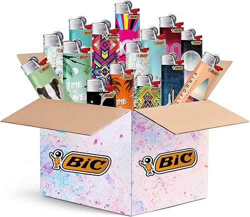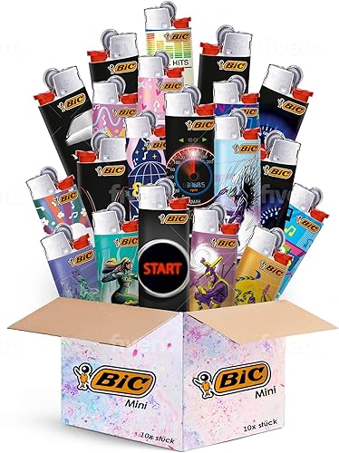 BIC Maxi Lot de 10 briquets BIC J26 avec roue de friction et allumage à pierre à feu