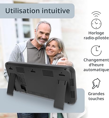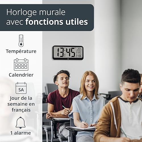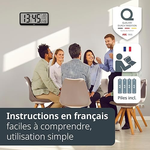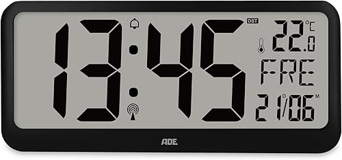 ADE Horloge numérique Murale geante radiopilotée avec Chiffres XXL | Horloge de Table avec Calendrier | avec température & Alarme | Parfaite pour Les Seniors ou Les porteurs de Lunettes | Noir