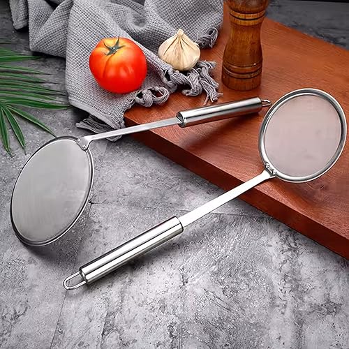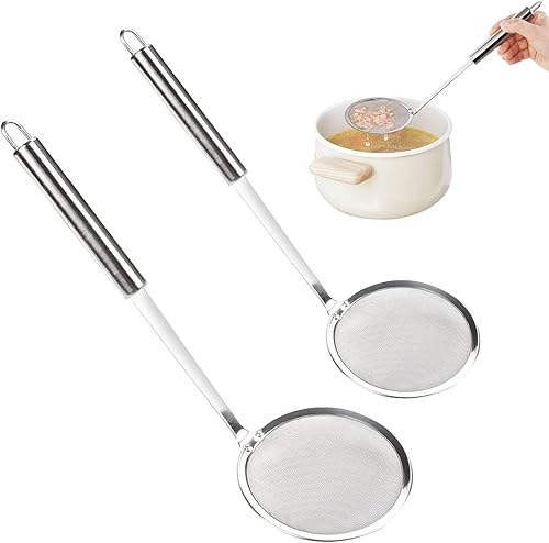 2 pieCes Écumeur inox Écumeur avec manche Tamis Tamis à grille Pour graisse, mousse, résidus, farine