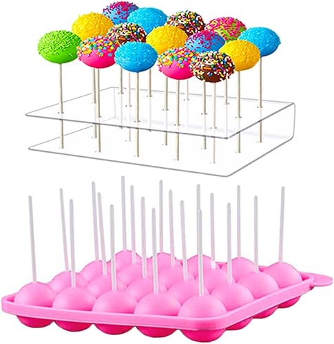 Moule Pop Cake, Moulle à Sucette Plateaux, Lollipop Mold, 20 Trous Gâteau Pop Stand, Support À Sucettes, pour La Fabrication Chocolat, Bonbons, Cuisson Gâteau, Sucette (Rose)
