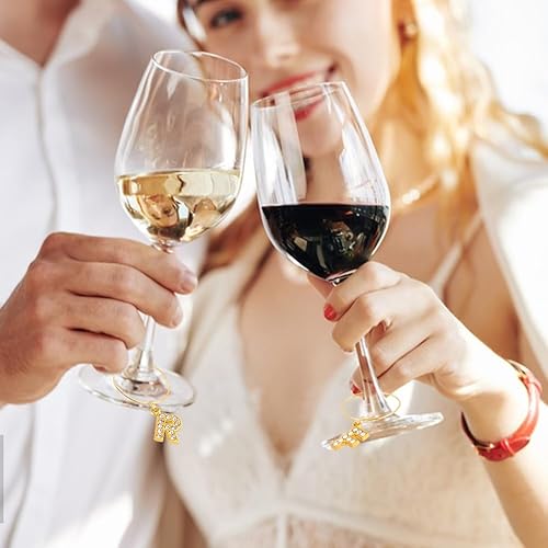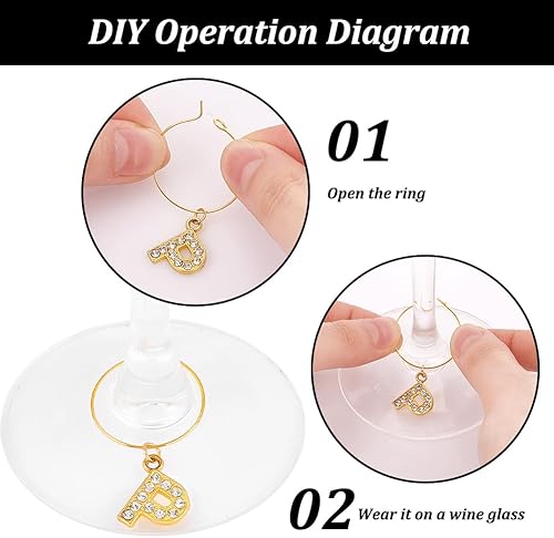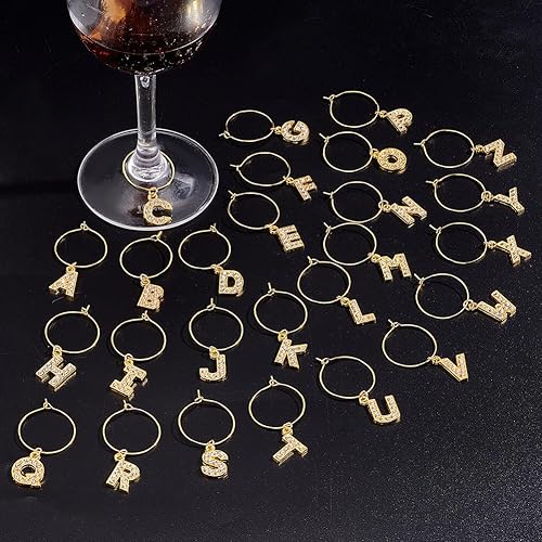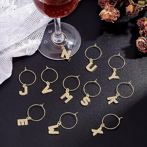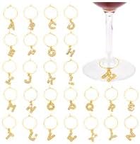 PH PandaHall 26pcs breloques en Verre à Vin avec Lettres Dorées Scintillantes pour Verres, Breloques en Diamant pour Verre à Vin, Marqueurs, Breloques en Verre pour Cocktail, Champagne