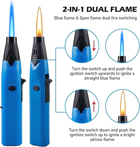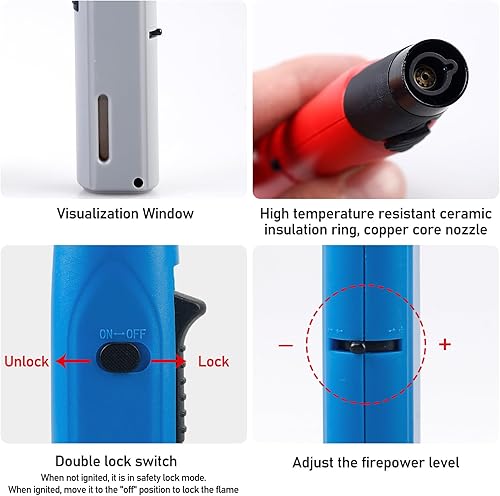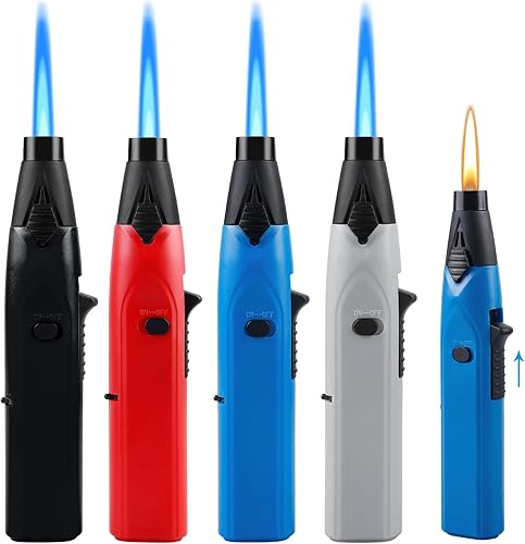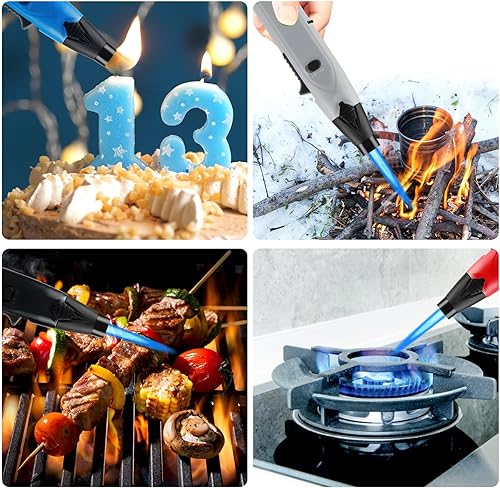 BYZESTY Briquet Tempête, 4 Pièces Jet Flamme Briquet Coupe-Vent, Briquet Chalumeau, Jet Flamme Allume Gaz, Briquet Tempête au Butane Rechargeable pour Bougies, Cuisine, Camping(Vendu sans Gaz)