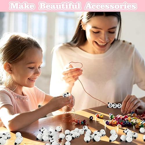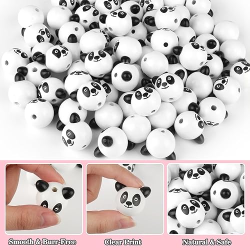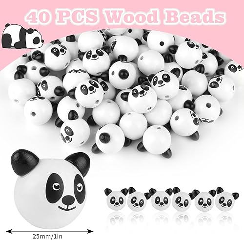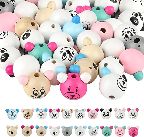 Lahnao 40 Pièces Perles en Bois Avec Visage - Boules Koala, Ours, Mickey, Panda 25 mm - Têtes Pour Bricolage, Vers Soucis et Porte-Bonheur