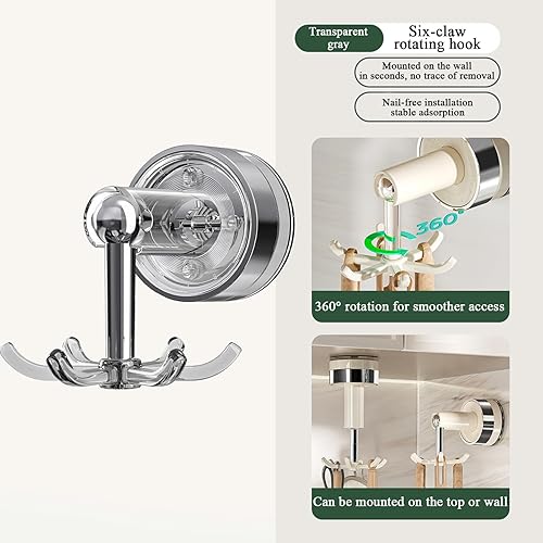 Bomefoi Crochets de Cuisine Suspendus - Porte-Ustensiles Rotatif avec Crochets,Support Adhésif 360° Gain de Place pour Organiser Ustensiles de Cuisine, Clés et Serviettes sous Meuble
