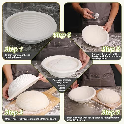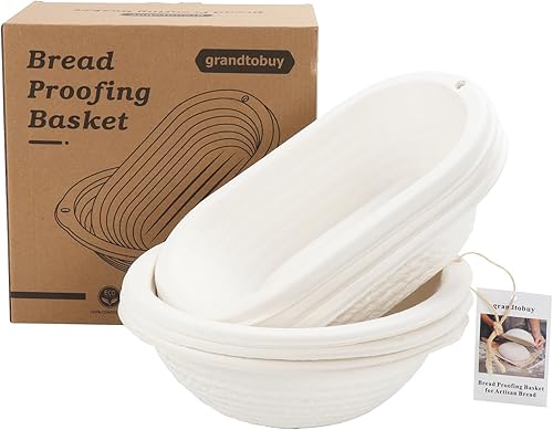 Lot de 2 paniers ovales de 28 cm pour pâte à pain au levain, bannière, bortform avec doublure en lin, housse en tissu, pour pain professionnel et artisanal