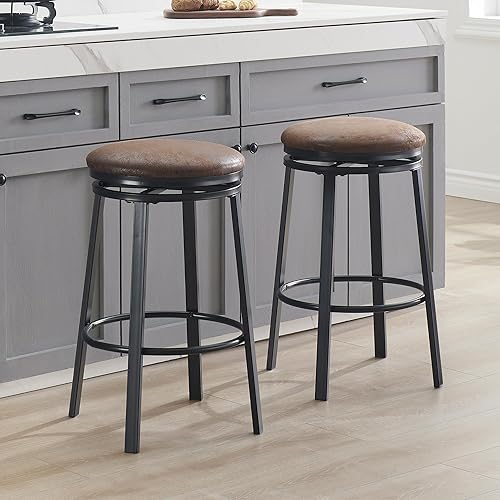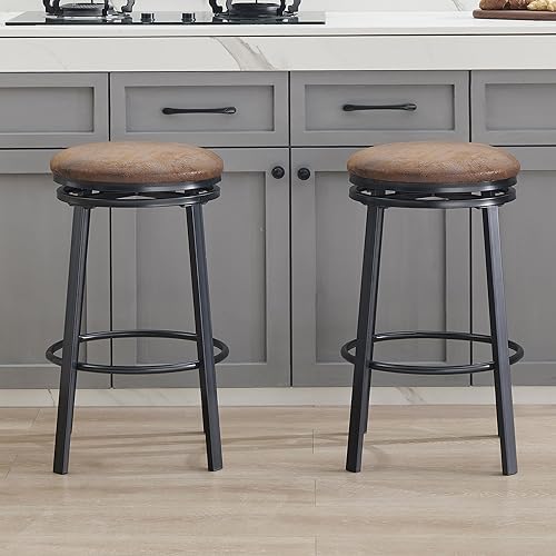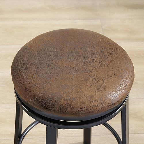 SHOCOKO Tabouret de cuisine pivotant de 61 cm avec siège en cuir synthétique et cadre en métal solide, tabouret de petit-déjeuner moderne pour îlot de cuisine, bar, salle à manger, marron
