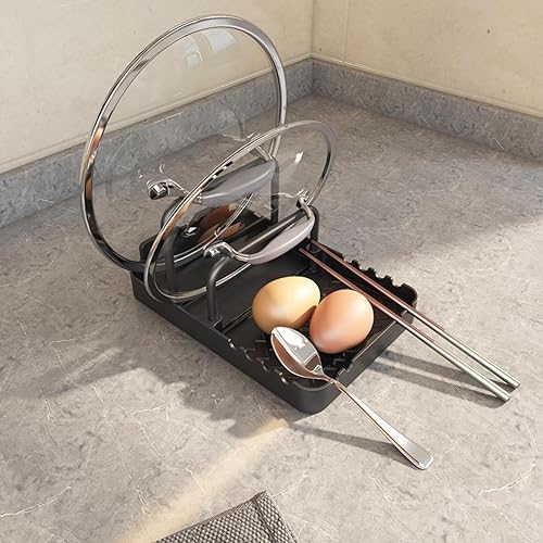 Support de rangement pour couvercles de casseroles | Support de poêle pour armoire, avec tapis antidérapant pour cuisine et cuillère