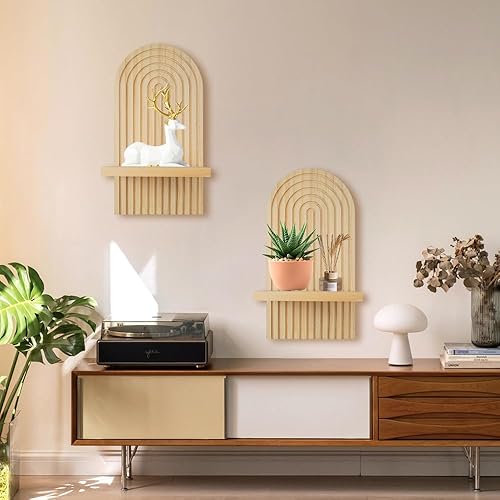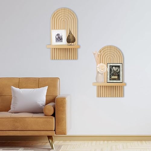 SenaiMy 2 Pièces Etagere Murale Bois, Flottante, Tablette Boheme Suspendues pour Décoration Maison, Salon, Bureau, Chambre, Salle de Bain, Cuisine