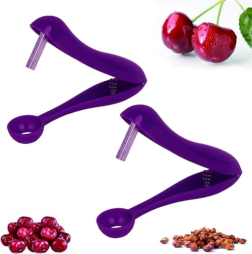 Lot de 2 dénoyauteurs de cerises - Enlèvement rapide des pierres de fruits - Convient pour la cuisine - Aubépine - Datte rouge - Jujube pour élimination rapide des pierres de fruits (violet)