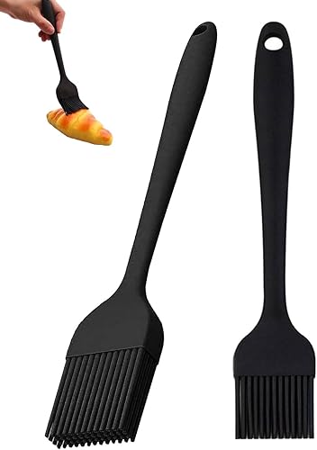 BPTRKOM 2 Pièces Pinceau de Cuisson en Silicone -Brosse de Cuisine en Silicone, Brosse de Cuisine en Silicone, Résistant à la Chaleur, pour la Cuisson, Le Barbecue, Les Gâteaux, la Cuisson (Noir)