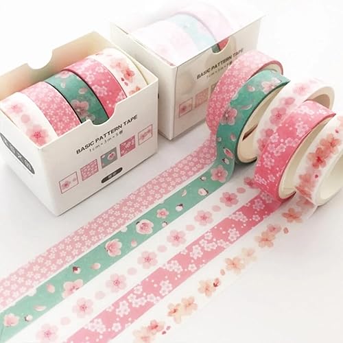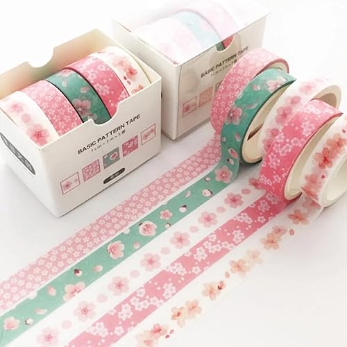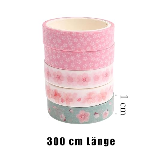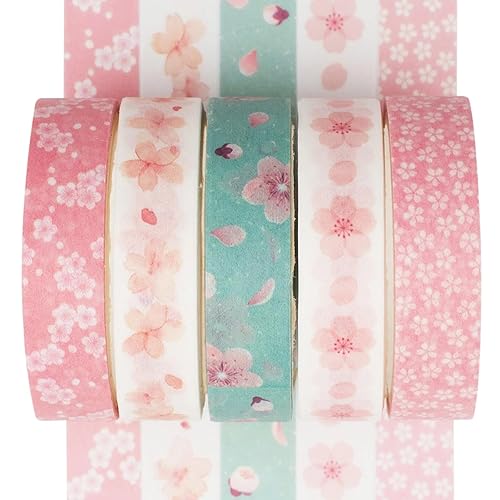 zurabini Lot de 5 rouleaux de ruban adhésif Washi - Motif fleurs de cerisier - Multicolore - Ruban adhésif décoratif - Pour bricolage, embellit les journaux, les planificateurs, les cartes et le
