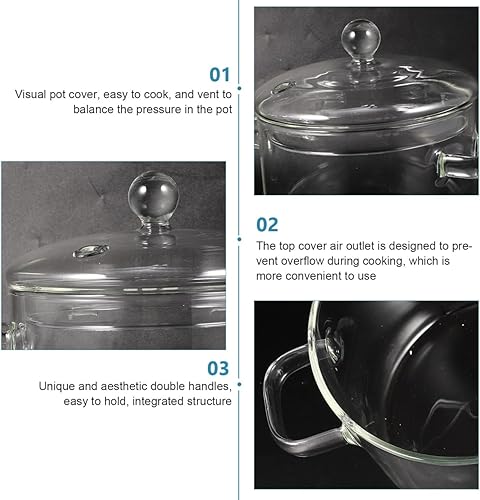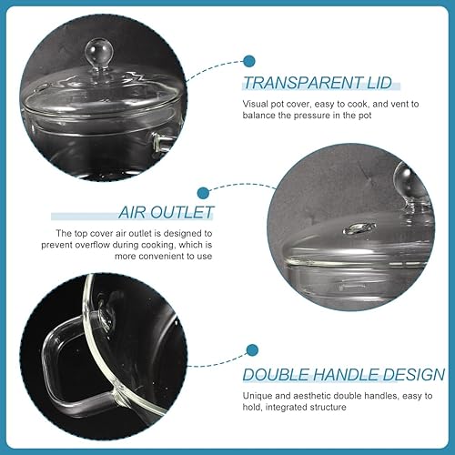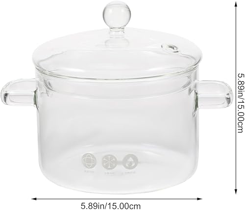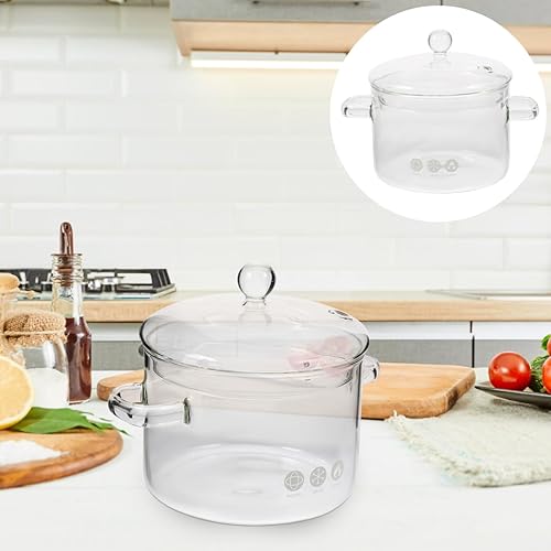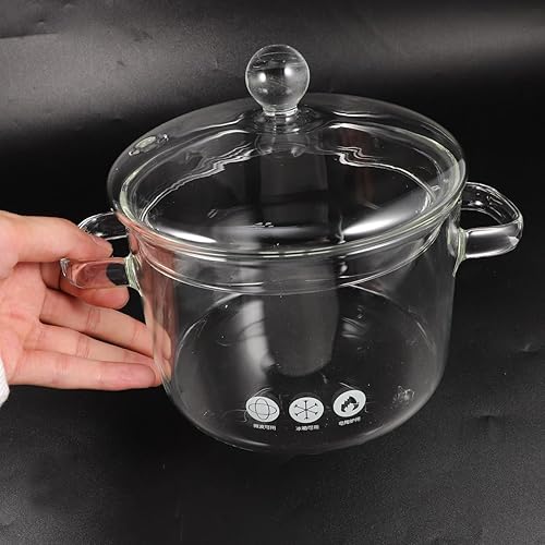 ERINGOGO Poêles de ménage pour la cuisson en verre borosilicate,Pot à soupe en verre à deux oreilles,Poêles à nouilles instantanées,Bol non stable,Poêle à œufs,Ustensiles de cuisine,1900 ml
