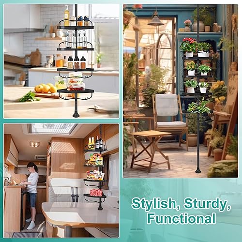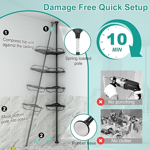 Sempicad Étagère de douche télescopique sans perçage 137-317 cm, étagère d'angle debout, avec 4 paniers, télescopique, inoxydable, pour baignoire et salle de bain, noire