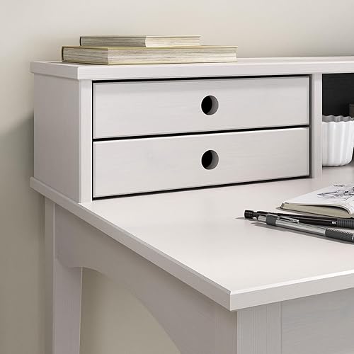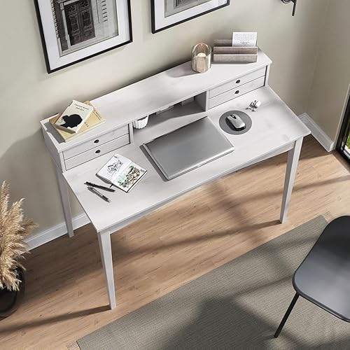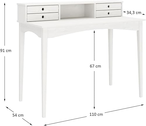 IDIMEX Bureau secrétaire Milano en pin Massif avec 4 tiroirs et 1 Niche, Bois lasuré Brun