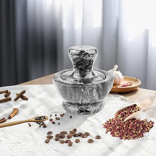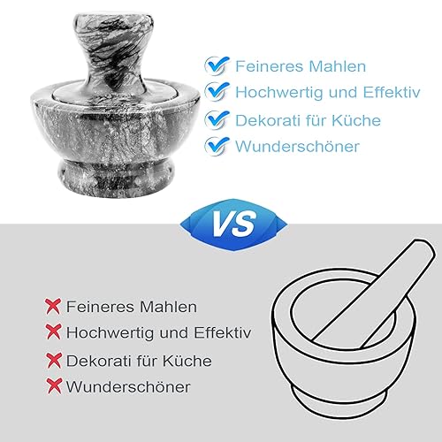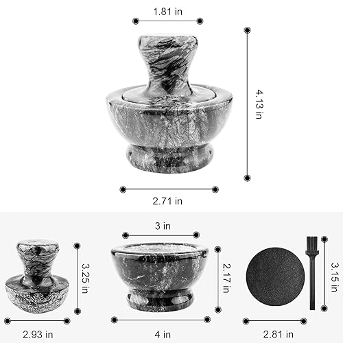 Mortiers et Pilons, Mortier Pilon Cuisine Ø3in pour Ail Epices Herbe Médecine Pilules, écrasement de Pilule avec Patin Antidérapant et Brosse, Marble Mortar and Pestle Set, Noir
