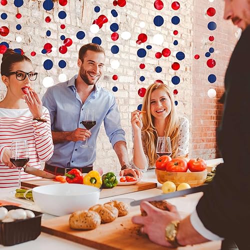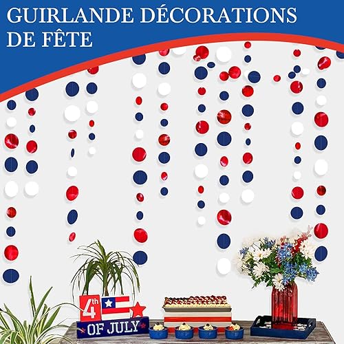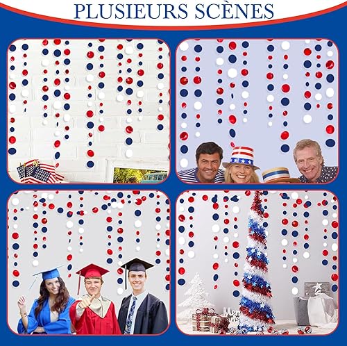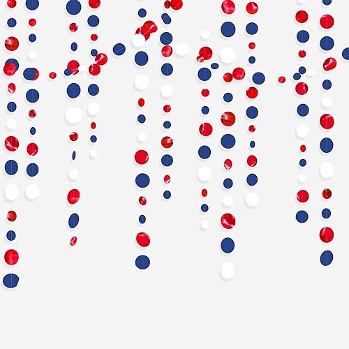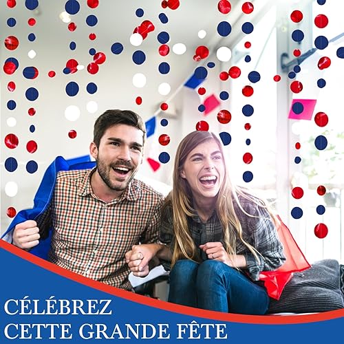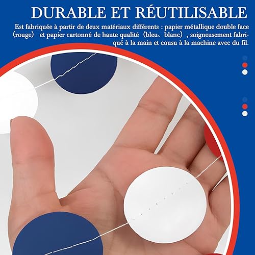 16m Guirlandes Décorations de Fête, Bleu Marine Rouge et Blanc à Pois Papier pour France fête Nationale, Remise des Diplômes, Festival Décor