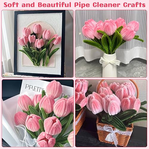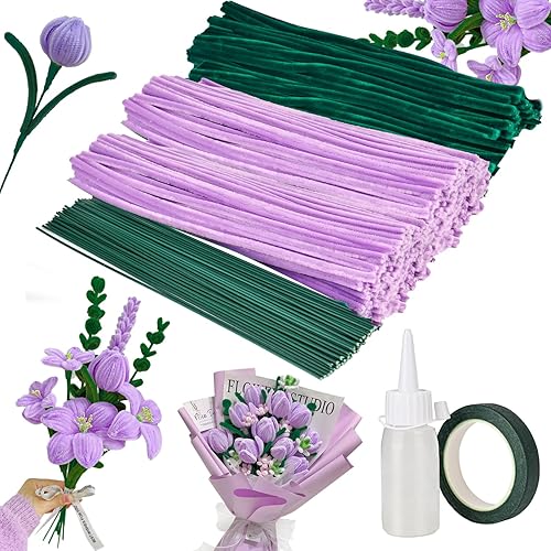bssmmai 550 PièCes Fil Chenille, Cure Pipe Chenille, Fils Chenilles Loisirs Creatifs, Fleur de Cure-Pipe de Tournesol, (Vert, Jaune, Marron)