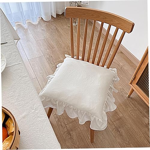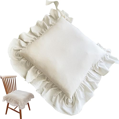Muzrunq Coussin de Chaise Blanc 16x16 Pouces, Fermeture Éclair, Non Glissant, Respirant, Volants, Pour Chaises de Bureau, Cuisine, Salle à Manger, 40x40cm, 100% Coton, Peluche, Intérieur