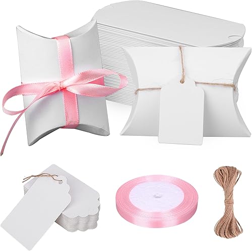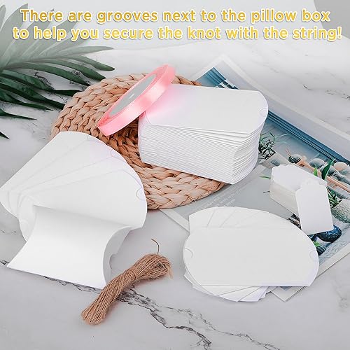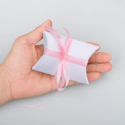 YSDMY boîtes à bonbons en papier 50 Pièces Boîtes cadeaux 9 x 6,3 x 2,5 cm Boîte de Faveur d'Oreiller pour mariage, anniversaire, Noël Blanc