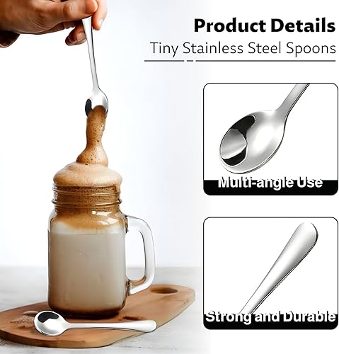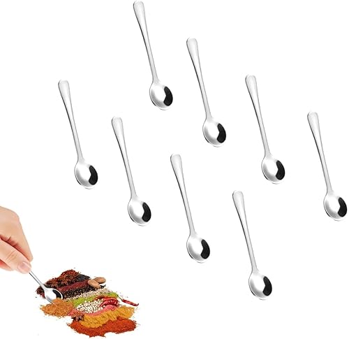Lot de 8 petites cuillères à expresso en acier inoxydable - Mini cuillères à expresso - 7,5 cm - Jolies petites cuillères à épices en acier inoxydable pour épices, sel, miel, cuillères à café - Fun