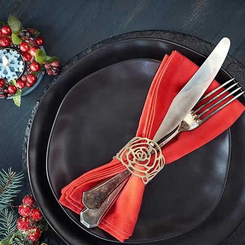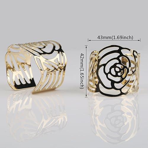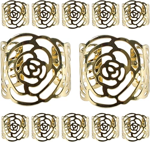 KAKOO 12 Pcs Rond de Serviette, Rond de Serviettes de Table Porte-Serviettes en Métal Ajouré Motif Fleur Bague Déco pour Mariage Banquet Anniversaire Fête