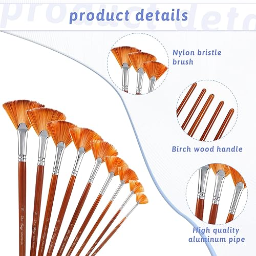 JIYIN Lot de 9 pinceaux éventails en nylon - Pinceaux acryliques - Pinceaux pour peinture acrylique, aquarelle, peinture à l'huile, gouache