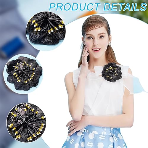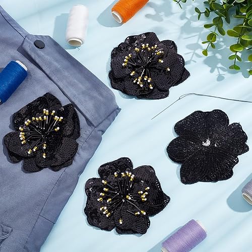 BENECREAT 4 pièce Patch Perlé à Paillettes et Fleurs 3D, Applique de Motifs Décorés de Fleurs, 11x10cm, pour Vêtements, Broche Cousue sur Patch Brodé, Noir