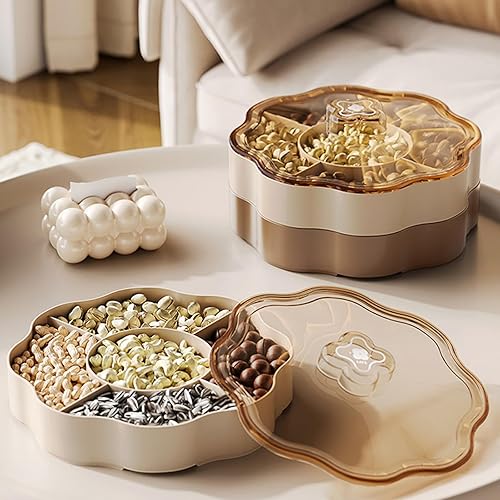 Azxcvbnm Distributeur de bonbons à 5 compartiments, boîte de rangement élégante pour fruits secs avec couvercle, support pour fruits secs, plateau de service pour apéritifs