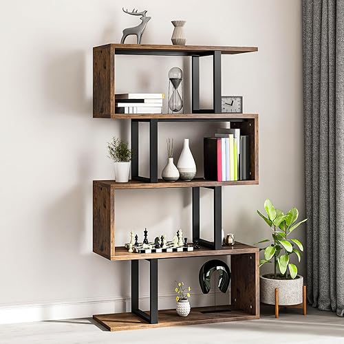 YITAHOME Bibliothèque à 5 étagères, Armoire de Rangement S, Meuble de Rangement Z, Meuble CD, Meuble de Separation Cuisine Salon, Etagère multifonctionnelle pour Le Bureau et la Maison (Rétro Marron)