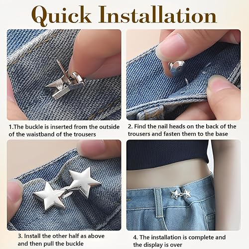 LAJUP 8 Jeux De Pinces De Serrage Pour Pantalon, Serrage De Ceinture De Pantalon Étoile Boutons Réglables Sans Couture Boutons Étoiles Épingles Bouton Jean Boutons Jean Réglables Pour Femme Pant