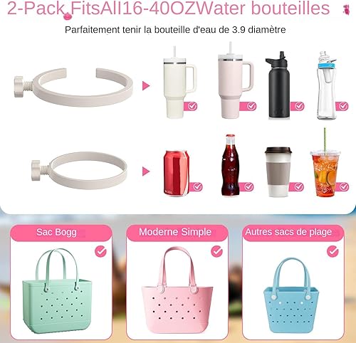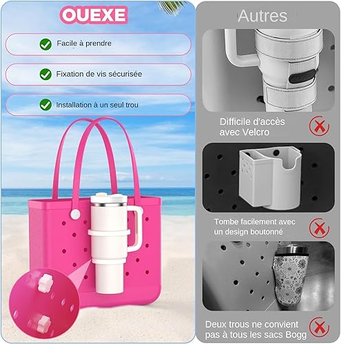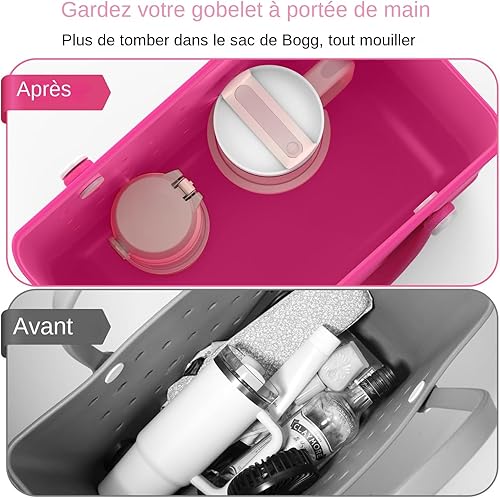 Porte Gobelet Amovible pour Sac,Fixation De Plage,Insert Amovible pour Tote Bag Et Accessoires pour Boissons,Solution Compacte De Transport avec Accessoire Décoratif,Organiseur De Boisson